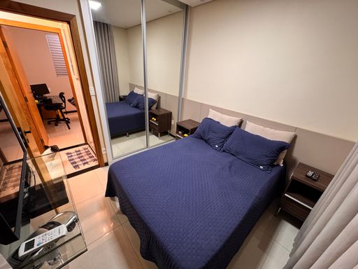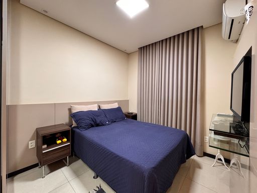 • 2 Quartos amplos e com armários planejados, sendo 1 com ar-condicionado Split instalado;