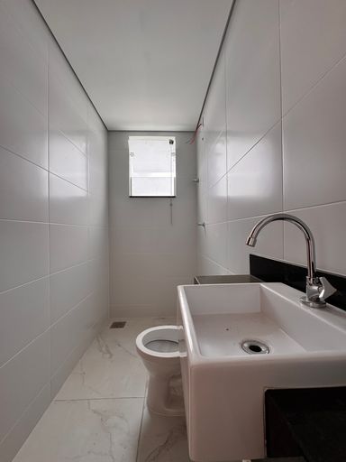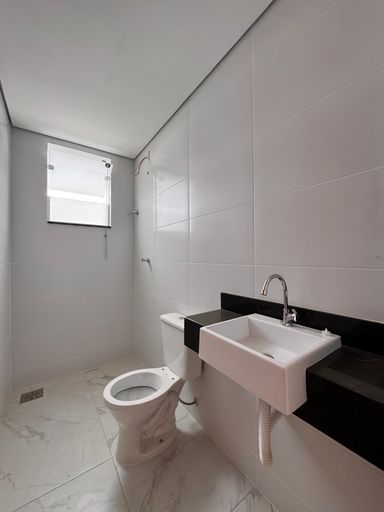 ° Banheiros da Suíte e Social com bancadas em granito, cuba das pias de semi encaixe, nicho nas áreas de banho e revestimentos até o teto;