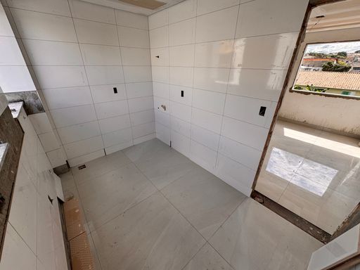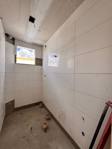° Banheiro Social com bancada em granito e revestimentos até o teto;