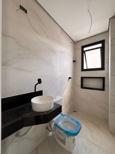 ° Banheiros da Suíte e Social Social com bancadas em granito, espelhos sobre as bancadas, Armários Planejados, nichos nas áreas de banho, revestimentos até o teto e preparação para Aquecimento Solar;