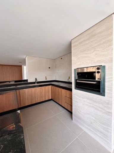 ° Cozinha Americana com bancadas em granito e revestimentos até o teto;