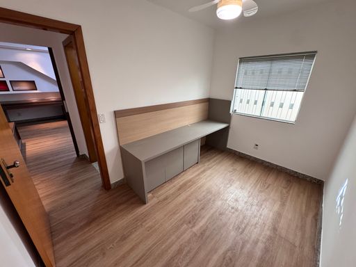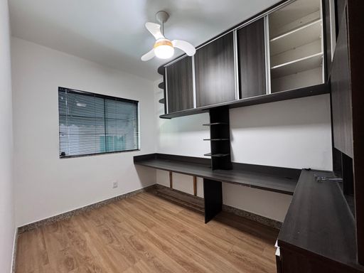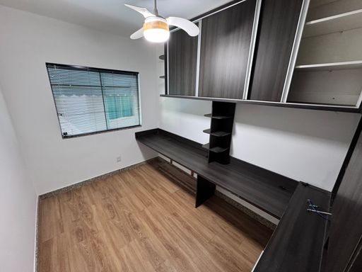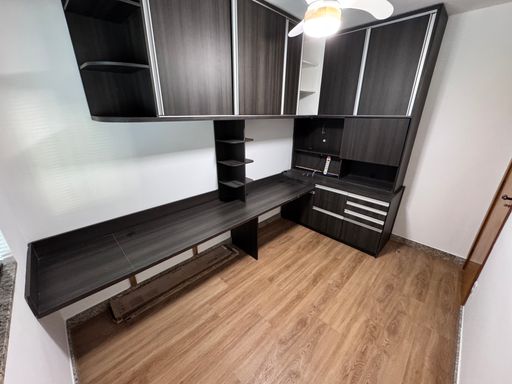 ° 3 Quartos sendo 1 com Suíte, todos com Planejados (sendo armários e mesas), ventiladores de teto e pisos em vinílico;
