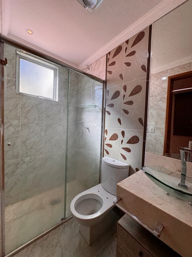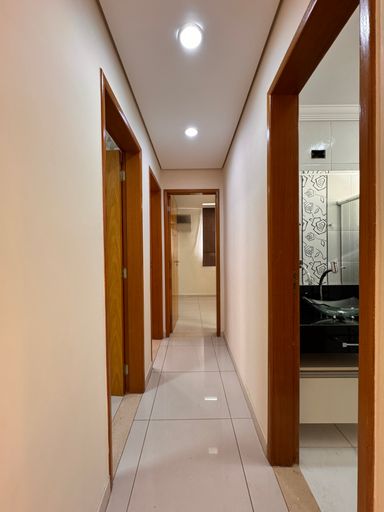 ° 3 Quartos sendo 1 com Suíte, Armários Planejados (2 com papel de parede) e todos com muita privacidade e ventilação;