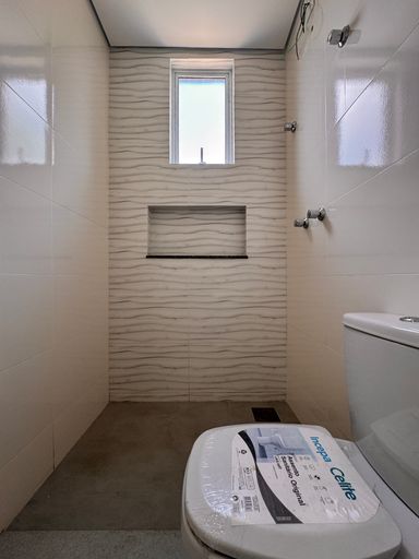 ° Banheiro da Suíte com bancada em granito esculpido, nicho na área de banho, revestimentos até o teto e Aquecimento Solar no Chuveiro;