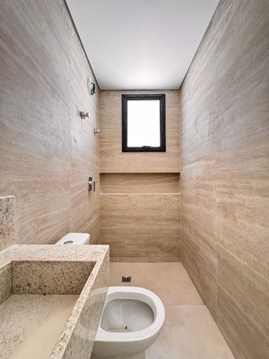 ° Banheiros da Suíte e Social com acabamentos de Alto Padrão, Nichos nas áreas de banho e Preparação para Aquecimento Solar;
