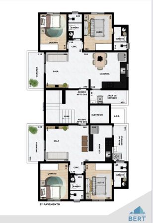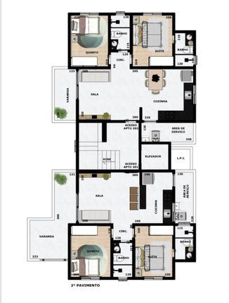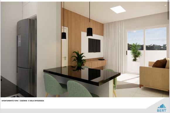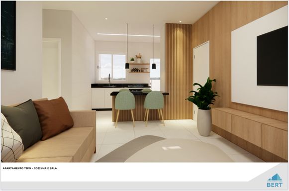 * 4 Apartamentos Tipo com 1 Vaga de garagem, 2 Quartos sendo 1 com Suíte, Banho, Sala com Varanda Gourmet, Cozinha, Área de Serviço fora da