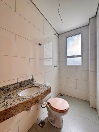° Banheiro Social com bancada em granito, cuba da pia de embutir, revestimentos até o teto e teto rebaixado em gesso;