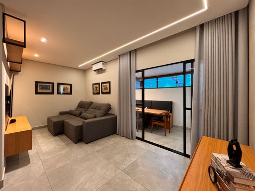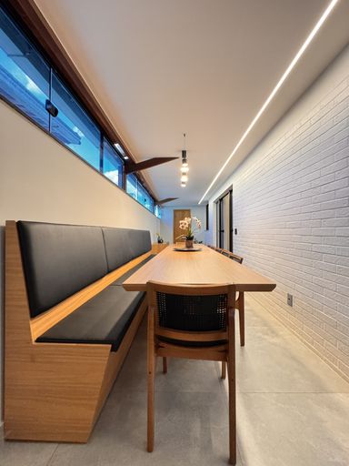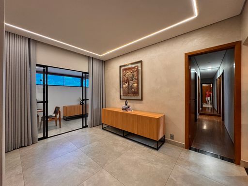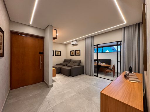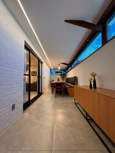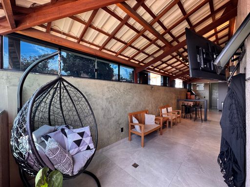 ° A área externa se destaca pela integração e conforto, com ambientes amplos, modernos, aconchegantes e bem iluminados, além de um charmoso espaço gourmet e uma ótima sala de jantar "minuciosamente planejada" para momentos especiais em família e com amigos. O imóvel também dispõe de um home office, perfeito para quem busca praticidade no dia-a-dia e produtividade no trabalho remoto.