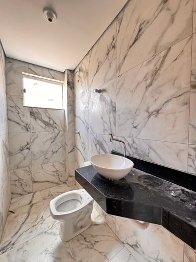 ° Banheiros da Suíte e Social com bancadas em granito, revestimentos até o teto e rebaixamento em gesso;