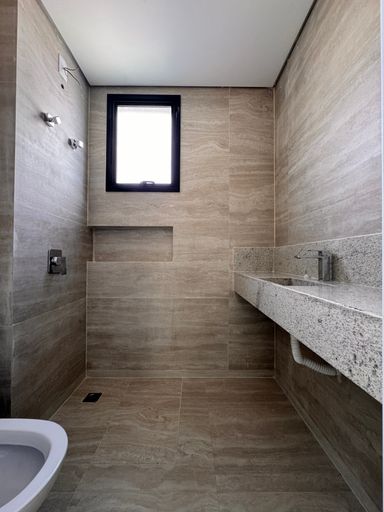 ° Banheiros da Suíte e Social com acabamentos de alto padrão, nichos nas áreas de banho e Preparação para Aquecimento Solar;
