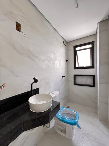 ° Banheiros da Suíte e Social Social com bancadas em granito, espelhos sobre as bancadas, Armários Planejados, nichos nas áreas de banho, revestimentos até o teto e preparação para Aquecimento Solar;