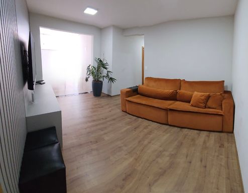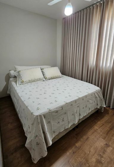 ° 3 Quartos amplos sendo 1 com Suíte e Closet (todos com armários planejados, piso em laminado e cortinas);
