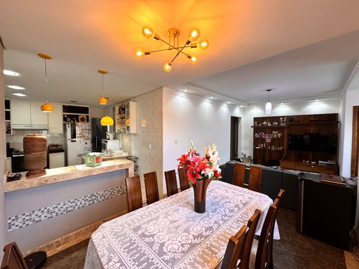 ° Sala para dois ambientes com Lavabo, iluminação e integrada à Cozinha Americana;