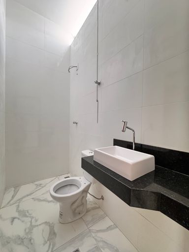 ° Banheiros da Suíte e Social com bancadas em granito e revestimentos até o teto;