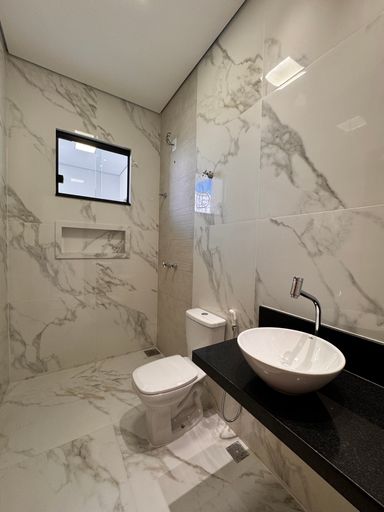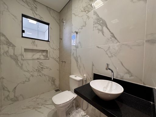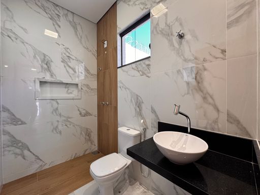 º Banheiros da Suíte e Social com lindos acabamentos, Nicho nas áreas de banho e Preparação para Aquecimento Solar nos Chuveiros;