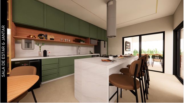 ° Ampla Sala para 2 confortáveis ambientes e totalmente integrada à Cozinha Gourmet;