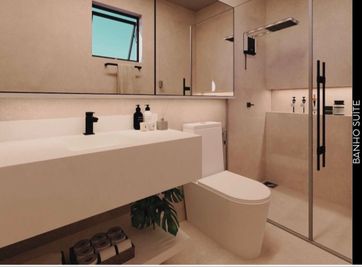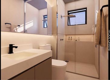 ° Banheiros da Suíte e Social com lindos e modernos Acabamentos, nicho nas áreas de banho e preparação para Aquecimento Solar nos chuveiros;