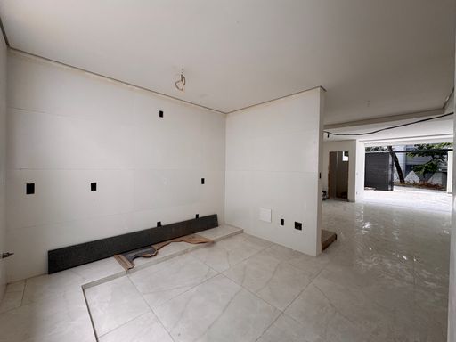 As CASAS serão entregues com pisos em porcelanato em todos os ambientes, preparação para ar split nos quartos, churrasqueira no terraço, preparação para hidromassagem para até 4 pessoas (no terraço), ampliação (após o habite-se) da área de garagem (passando para até 4 vagas), preparação para energia fotovoltaica no padrão e fachada em porcelanato.