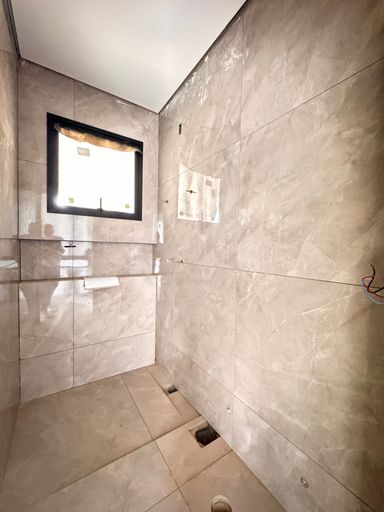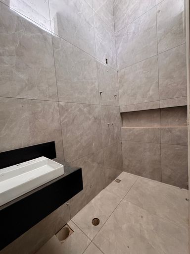 ° Imóvel conta ainda com ampla área verde, jardim, laje com manta asfáltica, reboco da laje com impermeabilizante REBOTEC, manta de solo na fundação e impermeabilizante REBOTEC nos pés de parede (para evitar infiltrações), preparação para Ar Split nos quartos e sala, preparação para Aquecimento Solar em todos os chuveiros e torneiras (exceto na lavanderia), todos os pisos em Porcelanato 1ª linha e tetos 100% rebaixados;
