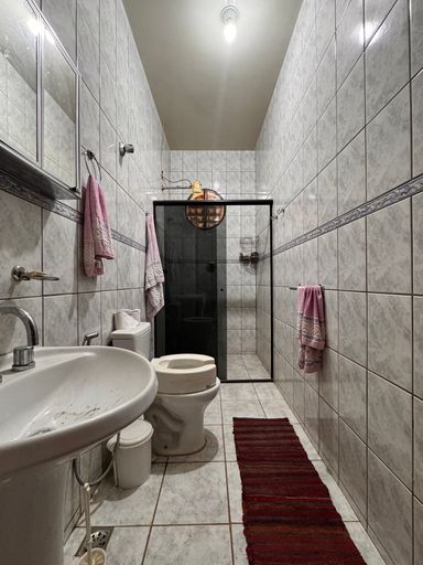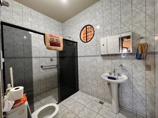 ° Banheiros da Suíte e Social com revestimentos até o teto e box em vidro temperado "fumê";