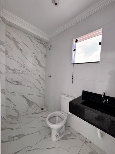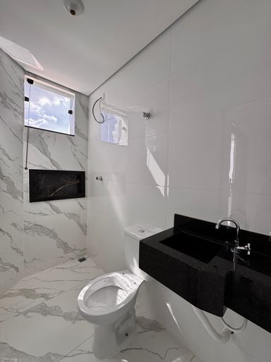 ° Banheiros da Suíte e Social com bancadas em granito esculpido, revestimentos até o teto e nicho nas áreas de banho;