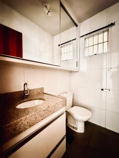 ---Segundo Piso: --Sala 2: piso em granito --Suíte com lavabo: piso em granito, ar-condicionado, armário, painel para TV com rack e estação para home-office planejados. Lavabo com bancada e piso em granito, armários planejados inferior e aéreo com espelhos. Este lavabo possui infraestrutura hidráulica para ser ampliado para um banheiro completo --Cobertura com área gourmet e área de serviço: Ampla área coberta com parte do teto retrátil, fechamento em blindex, bancadas em granito, armários em alumínio com pintura eletrostática, churrasqueira completa revestida em porcelanato e granito. Área para instalação de ducha que pode ser utilizada para ampliar o banheiro da suíte com lavado