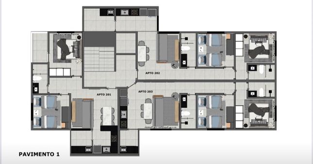 ° Sala ampla para 2 ambientes totalmente integrada com Cozinha Americana;