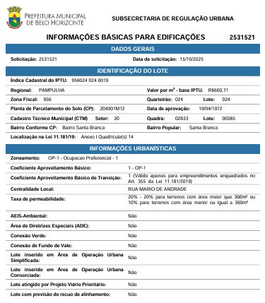 LOTE com 360m² à Venda - Barracão - Zoneamento OP 1 - Santa Branca - Pampulha BH