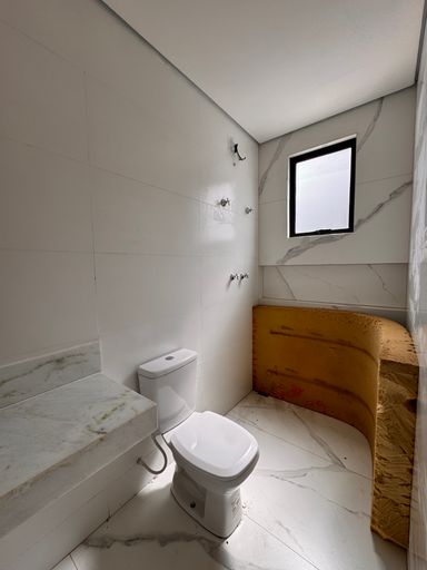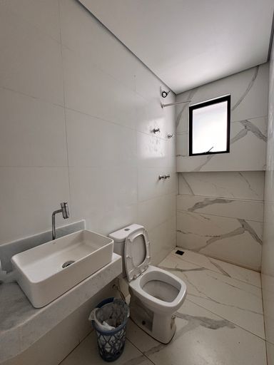 ° Banheiros da Suíte e Social com bancadas em granito ou Porcelanato esculpido e preparação para Aquecimento Solar nos chuveiros;