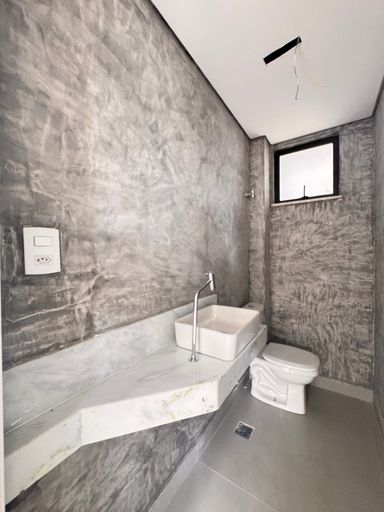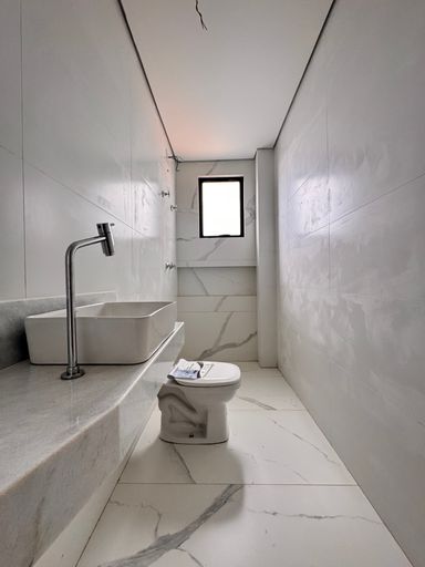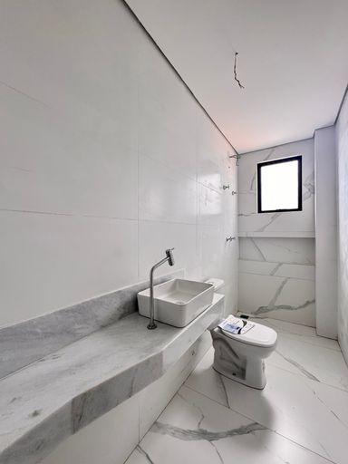 ° Banheiros da Suíte e Social com bancadas em granito ou Porcelanato esculpido e preparação para Aquecimento Solar nos chuveiros;
