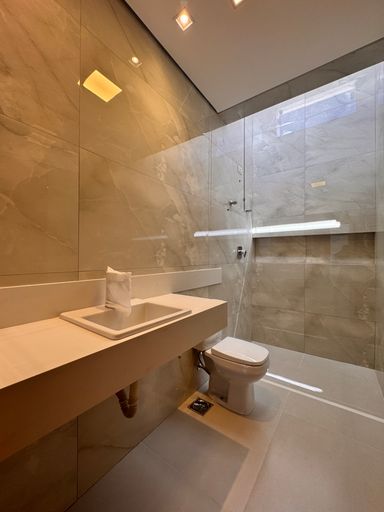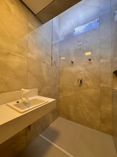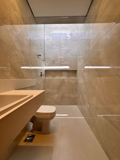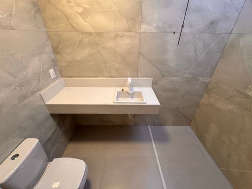 ° Banheiros da Suíte e Social com bancadas em granito, cuba das pias de semi encaixe, revestimentos até o teto, nicho nas áreas de banho e Aquecimento Solar;